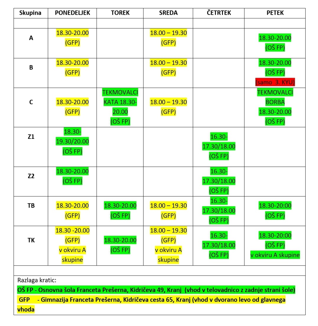 Vabimo vas, da se spet udeležite redne vadbe v sezoni 2025/26. Vadba bo potekala po spodaj navedenem urniku.