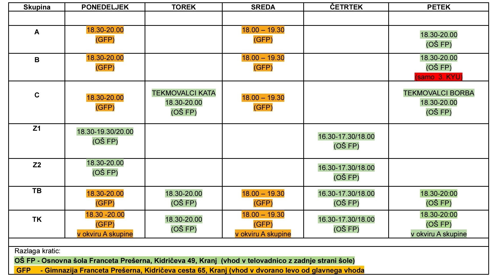 Vabimo vas, da se spet udeležite redne vadbe v sezoni 2024/25. Vadba bo potekala po spodaj navedenem urniku.